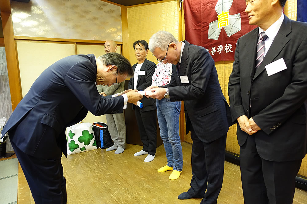 還暦ホームカミングデー 今年、還暦を迎えた参加者、昨年 参加できなかった参加者に原会長より記念品贈呈。