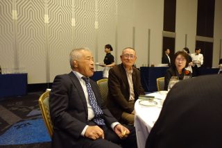 各テーブルでは北陽100周年のお祝いと再会で笑顔がこぼれた。