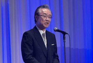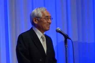 原強同窓会長から同窓生を代表して母校100周年のお祝いの言葉、